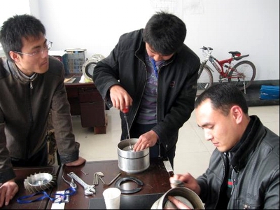 對癥方可下藥。在仔細分析了流量計表現出來的癥狀之后,工作人員已基本可以肯定征兆的源頭在于軸承了,下步要做的工作就是驗證這一推論、同時解決相應問題。零件被一一拆卸下來,期間費了大家不少功夫,尤其是對“罪魁禍首”軸承的拆分,這個指甲蓋大小的“精密元件”著實讓我們這幫大老爺們費了不少的勁兒,連縫衣針和水果刀都派上用場了。以至于在成功清除掉卡在軸承滾珠與軸承內壁之間的雜質、使其恢復正常運作之后,我們都有點不敢相信真是自己做到的。