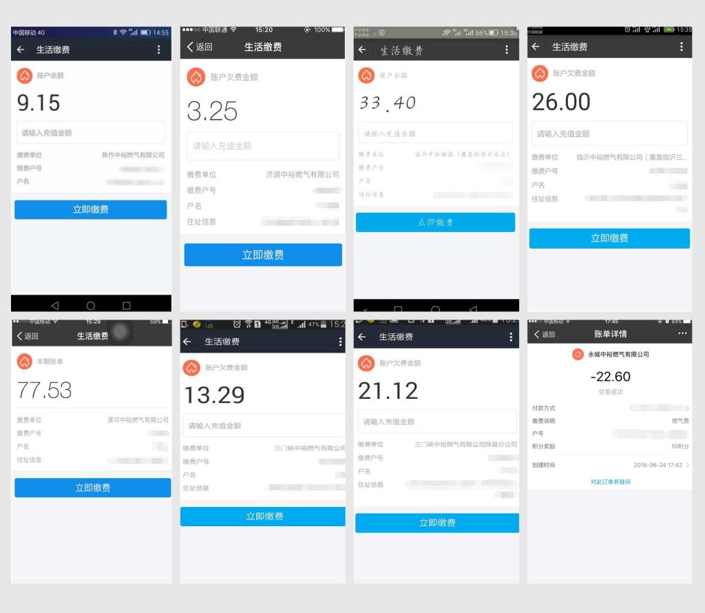 4月份,集團與合作方簽訂框架合作協(xié)議。經(jīng)過審慎必選,確定支付寶成為集團移動支付項目的合作建設(shè)單位;5月份,確定首期移動支付項目實施單位,按計劃啟動對接程序開發(fā);6月份,6個地市7家公司的移動支付項目聯(lián)合調(diào)試工作次序開展;7月1日,集團首期移動支付合作項目正式上線,即日起,焦作、漯河、臨沂、三門峽、濟源、永城6地市的集團普表居民用戶可通過支付寶輕松實現(xiàn)氣費繳納操作。